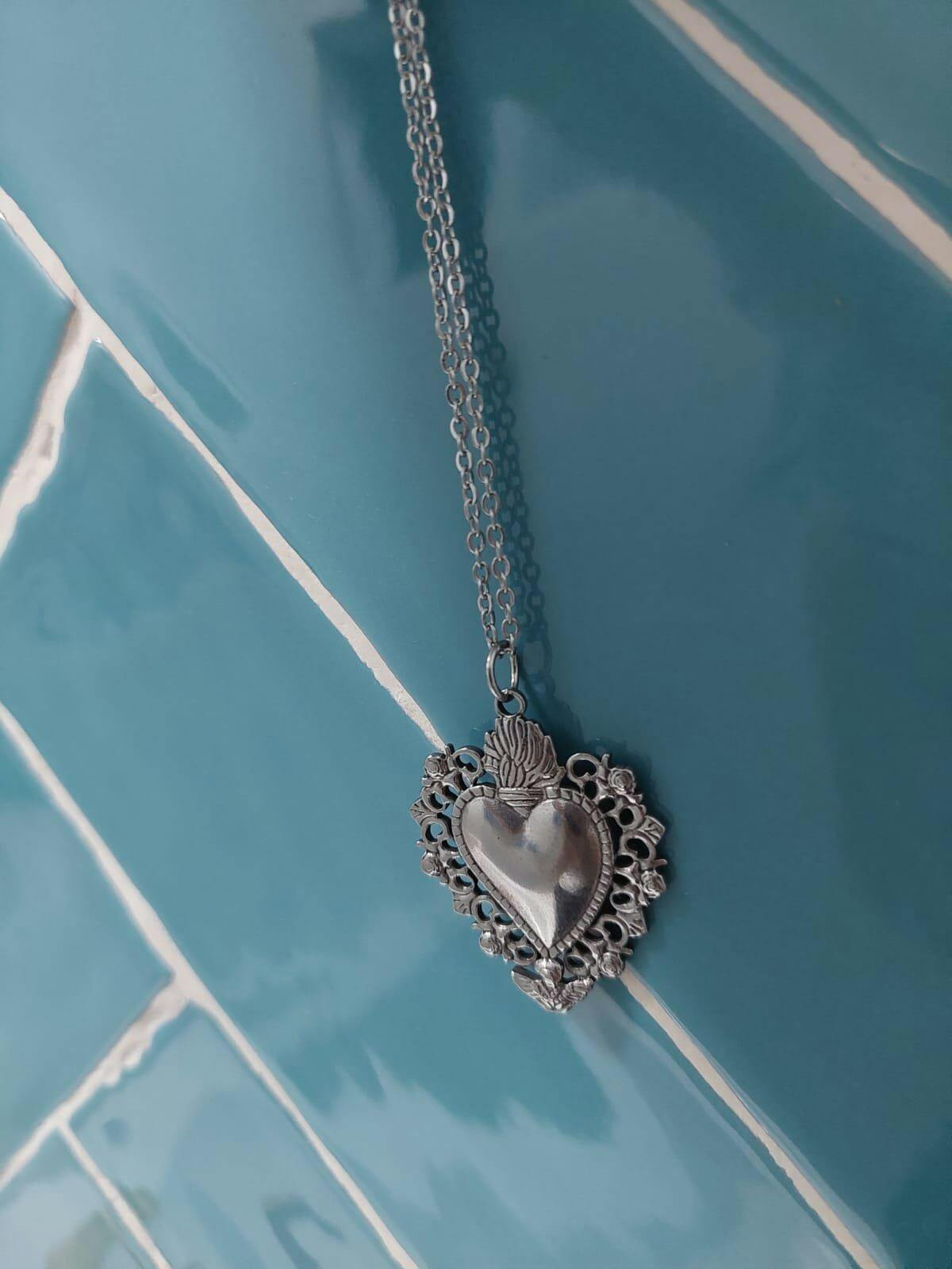 💎 Collar Sagrado Corazón en Acero Inoxidable Baño de Plata – Ana María Mexico
